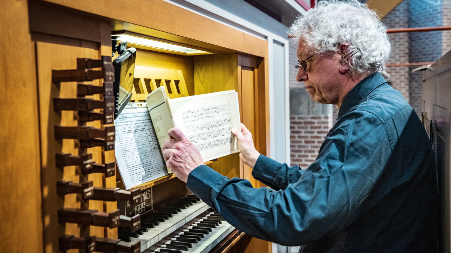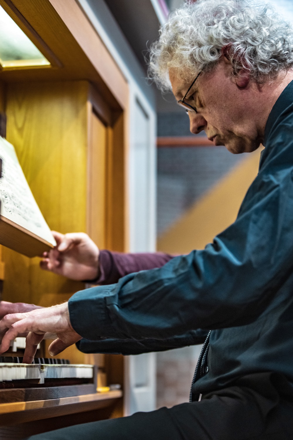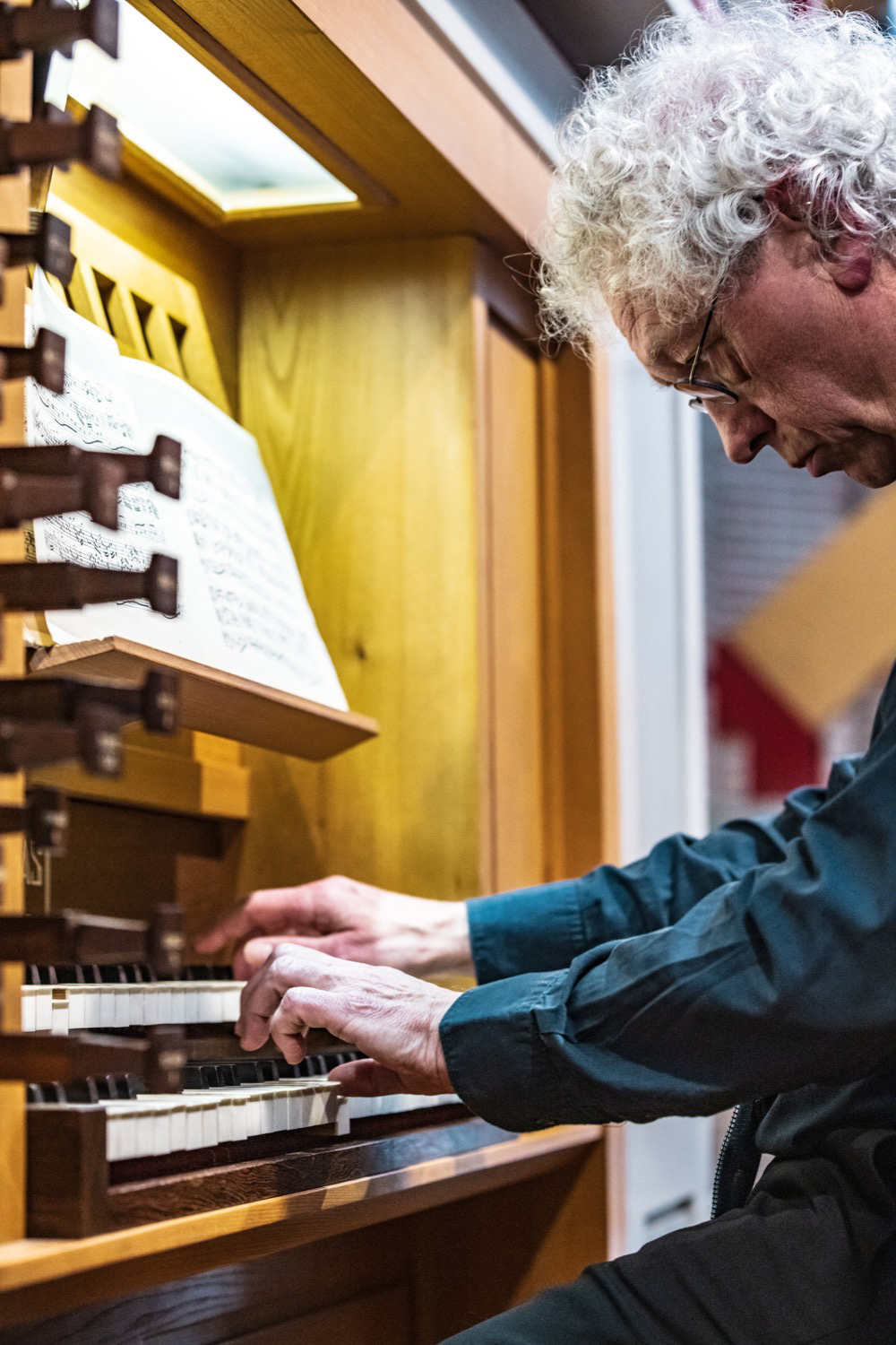 Bernard Foccroulle, musicien et compositeur et futur docteur honoris causa, interprète un morceau musical à l'orgue après l'eucharistie.