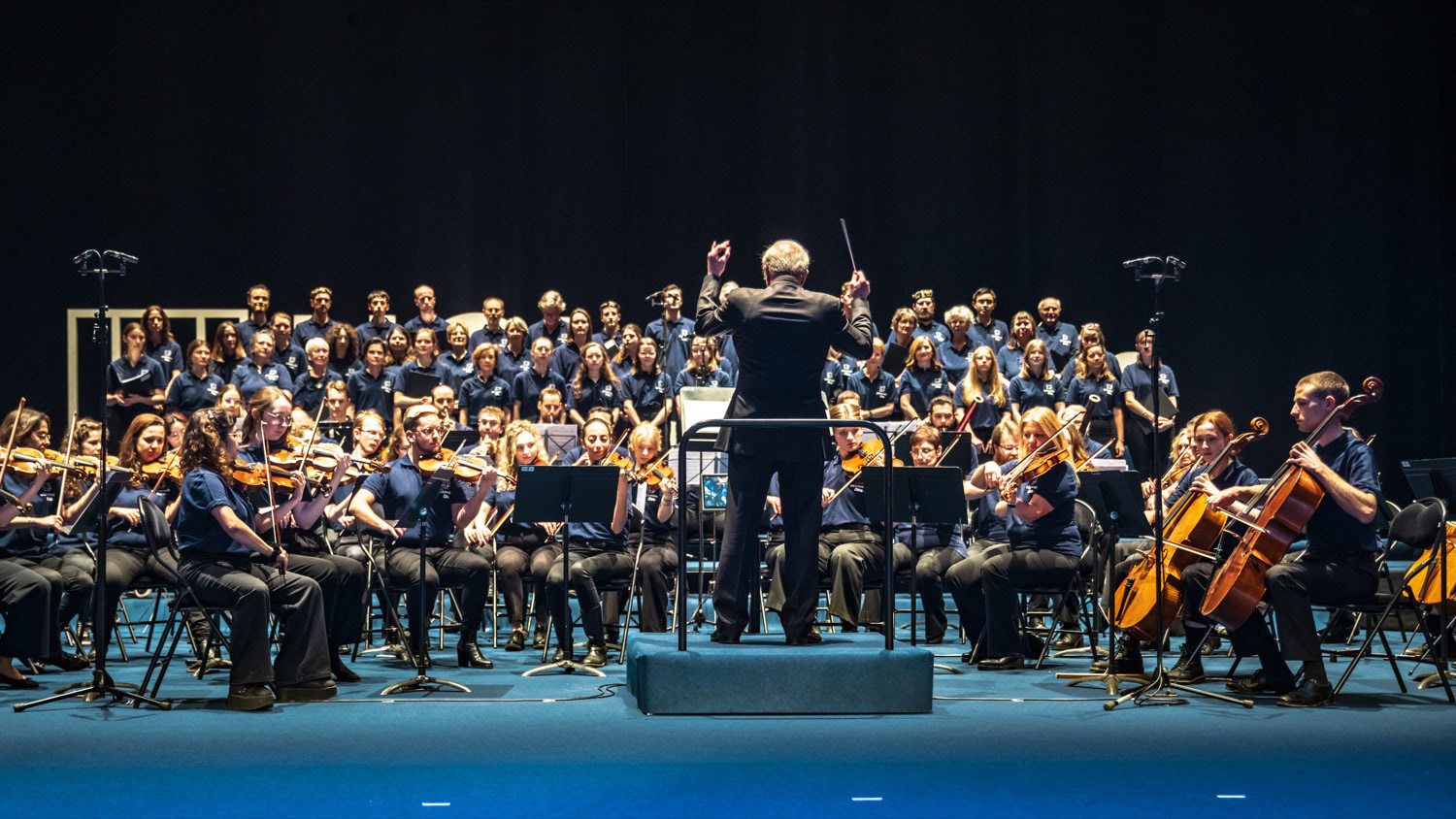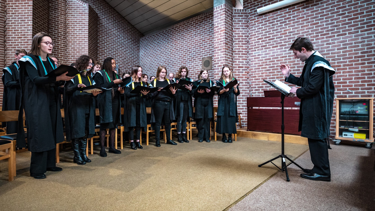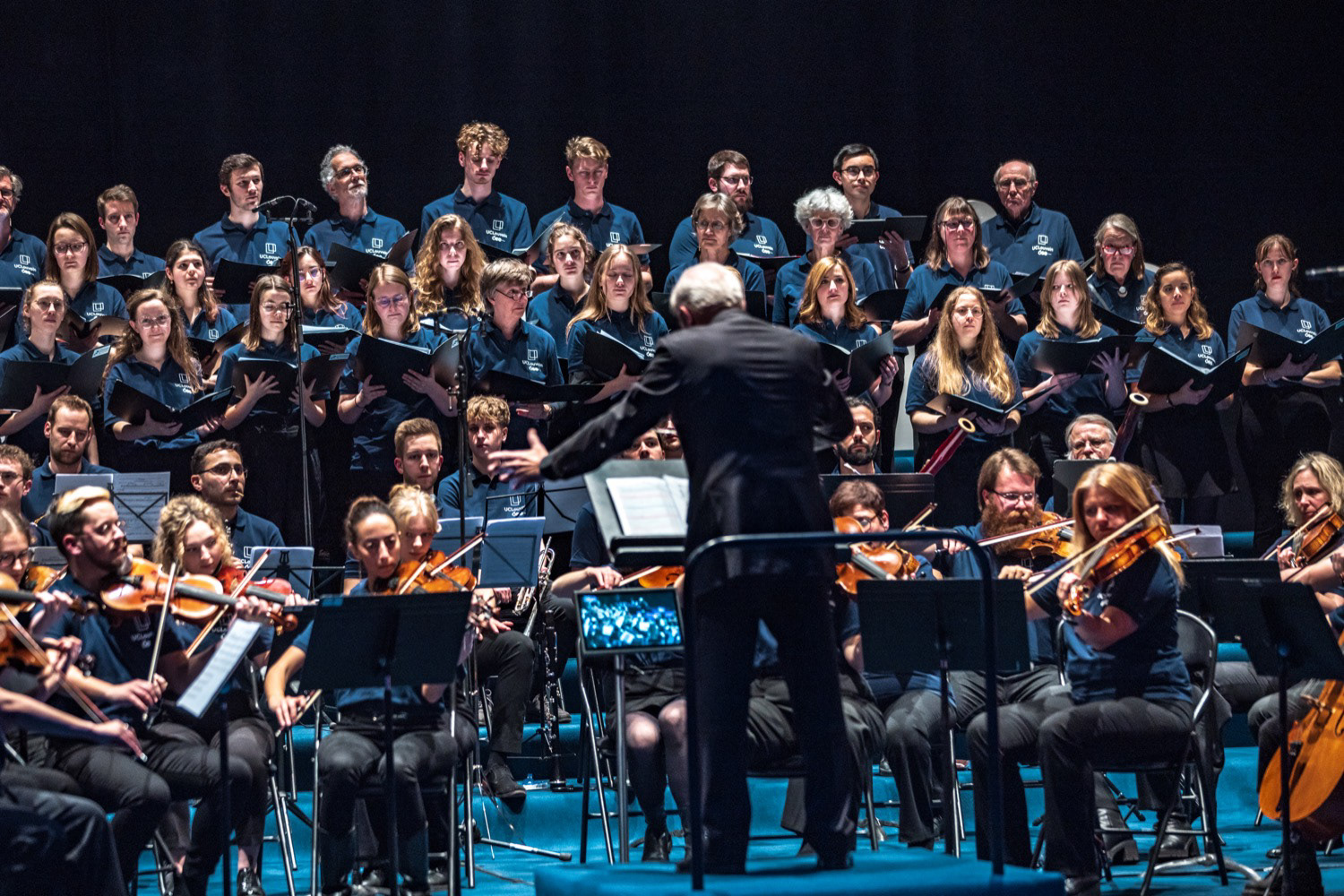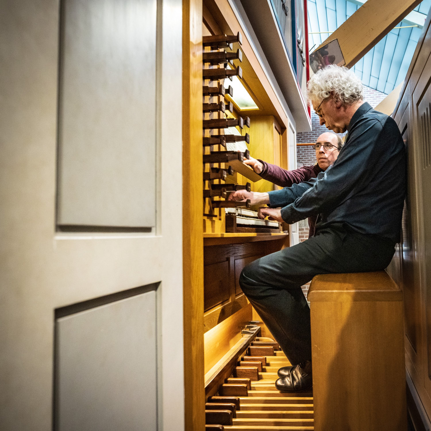 Bernard Foccroulle, musicien et compositeur et futur docteur honoris causa, interprète un morceau musical à l'orgue après l'eucharistie.