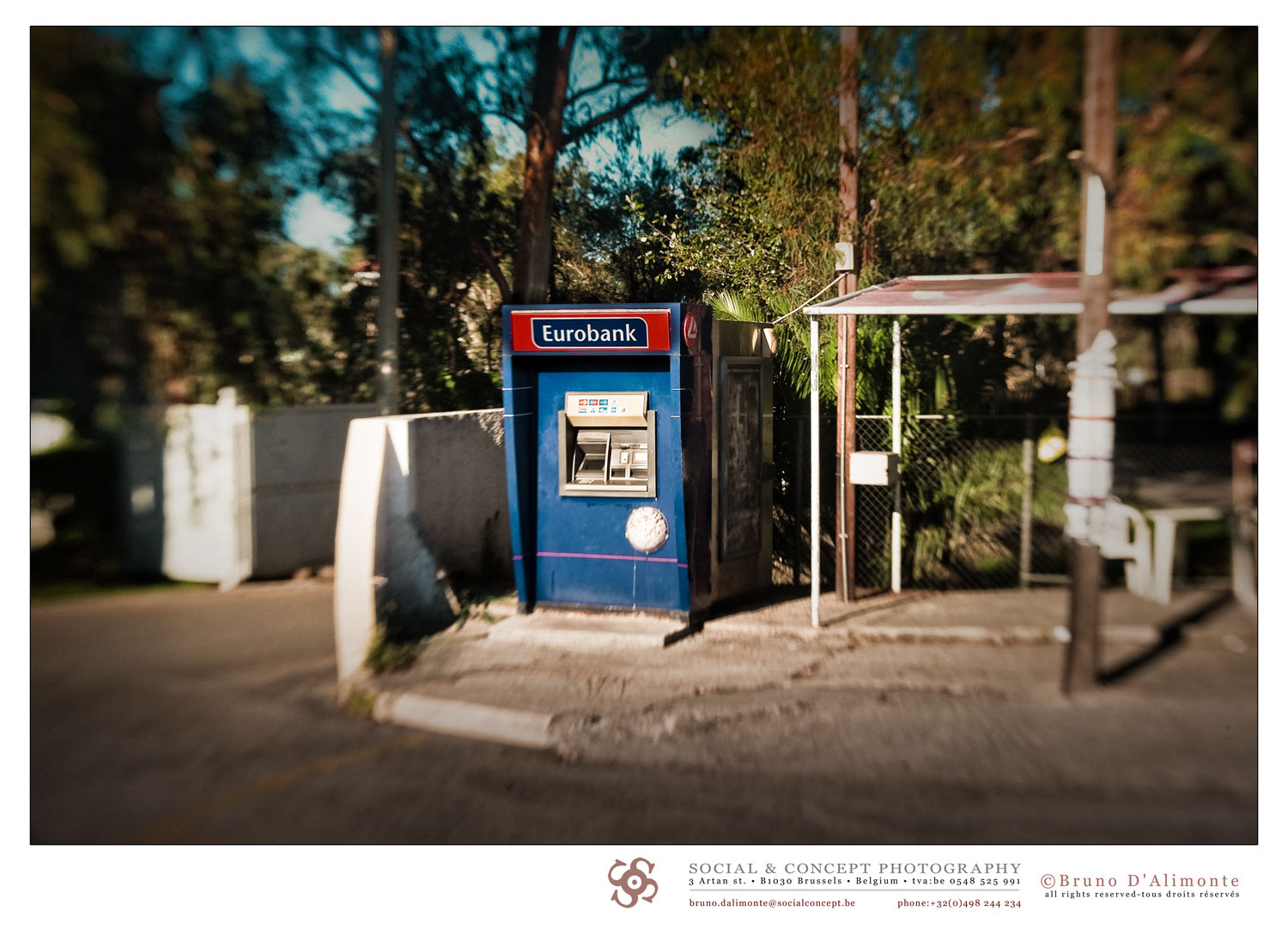 With the candid assurance of everything-is-all right, I could start my series of ten images with a cash machine lost in a wobbly euro zone, and water my doubts under a cerulean shower that refuses to mourn her frozen seclusion. To follow the trail, some automobile relics evoke an air of scruffiness, of horizontal nonchalance for an amorphous lack of fuel. These images transpire the blues, like this crisis unfolding endlessly since I was born; these photographic abandonments breathing tranquillity evoke perhaps ambitions or goals which are not reached or achieved. Questions will linger on the causes or on a possible indulgence in this soft universe but perhaps also on the discovery of otherness and empathy. And be not deceived : the outcomes are always provisional and I love that.